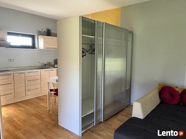 Żurawiniec 500m od miasta Wrocław - Kawalerka (najlepiej dla jednej osoby)- wolnostający domek gościnny do wynajęcia 36mkw, urządzony, wszystkie meble na zdjęciach. Dwie szafy, stolik przy narożniku, biurko, stół i trzy krzesła, lodówka, pralka, indukcja, okap. ogrzewany piecem konwekcyjnym. Budynek jest wybudowany z cegły ceramicznej ocieplony wełną, niskie straty ciepła.